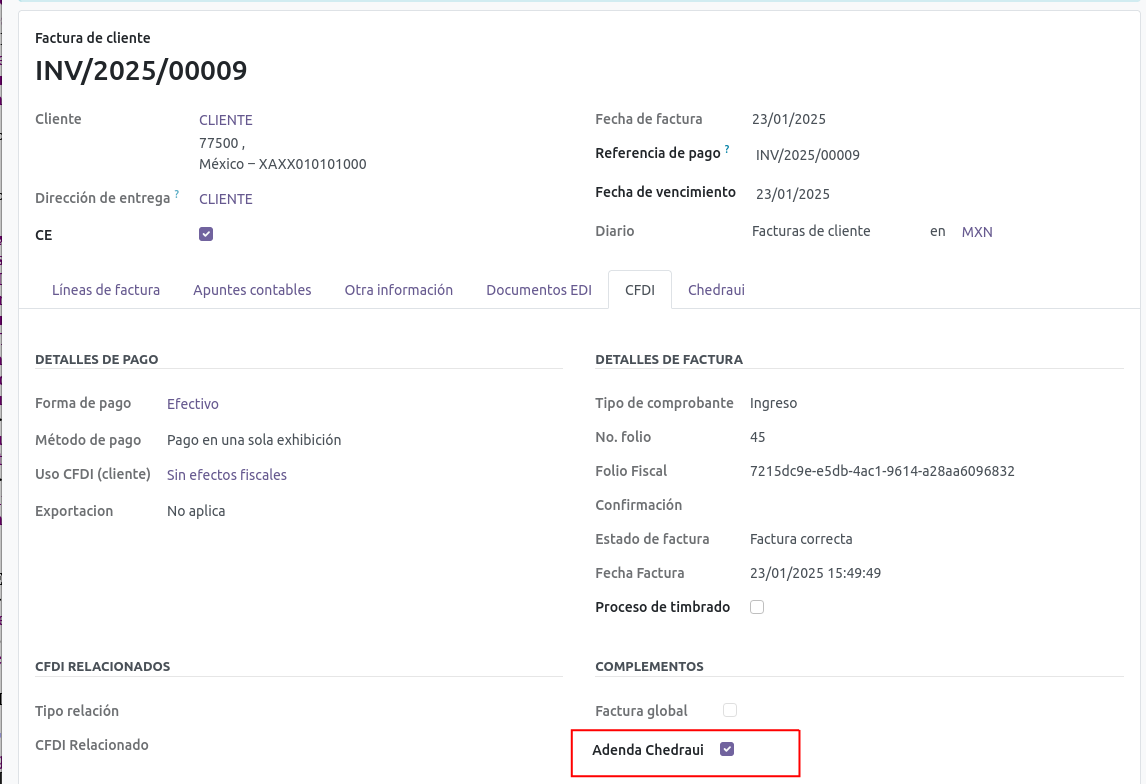 El módulo permite agregar la addenda de Chedraui a un XML ya timbrado.