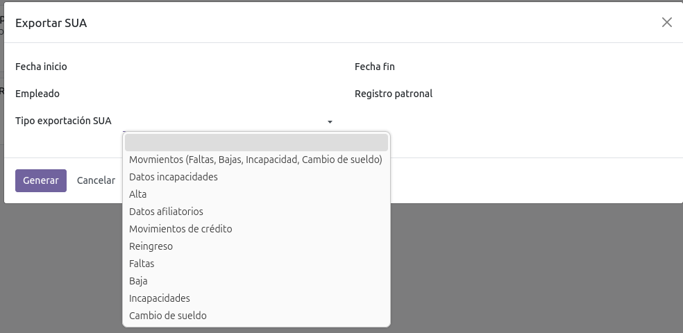 El módulo permite crear un archivo de texto el cual se puede importar en el portal del SUA o IDSE.