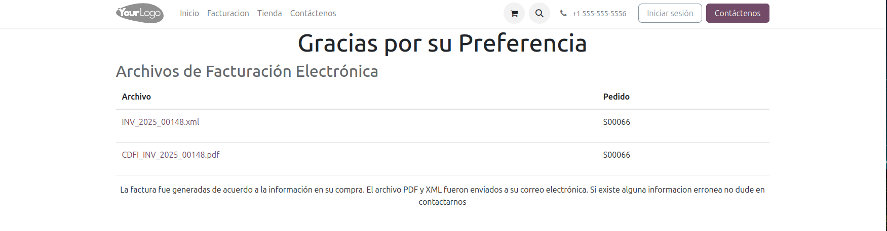 Si el pedido y el cliente se encuentran aparece la información de como se va a generar la factura.