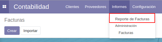Menú de reportes de factura