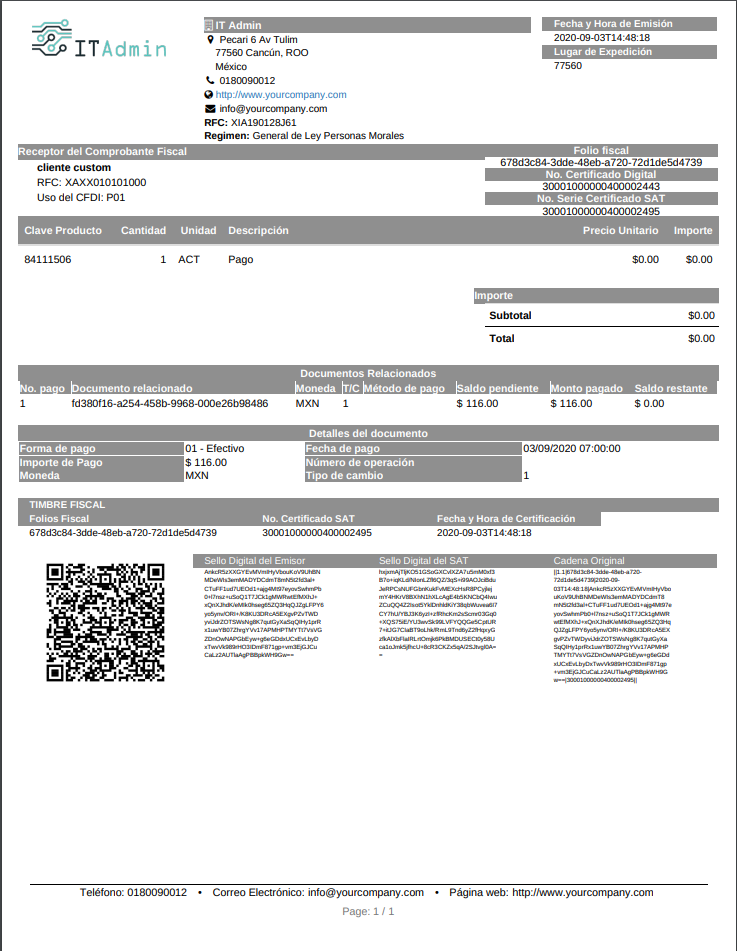 El módulo solamente es compatible para la facturación electrónica IT Admin.
